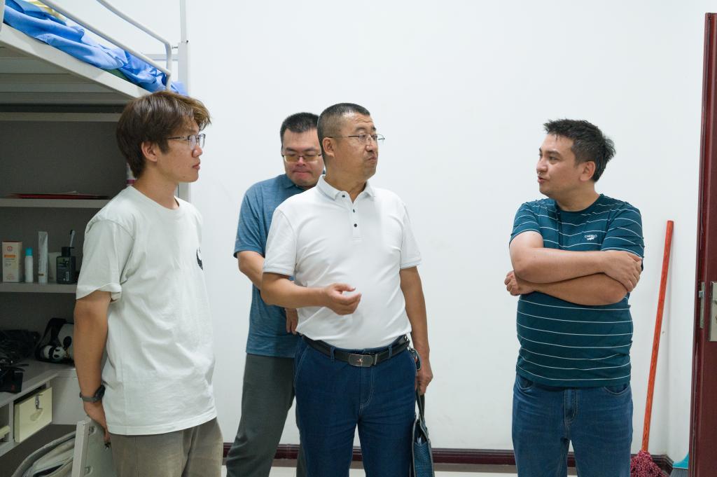 (党支部书记周永新、副院长马哈木提江·米吉提来到宿舍看望新生)