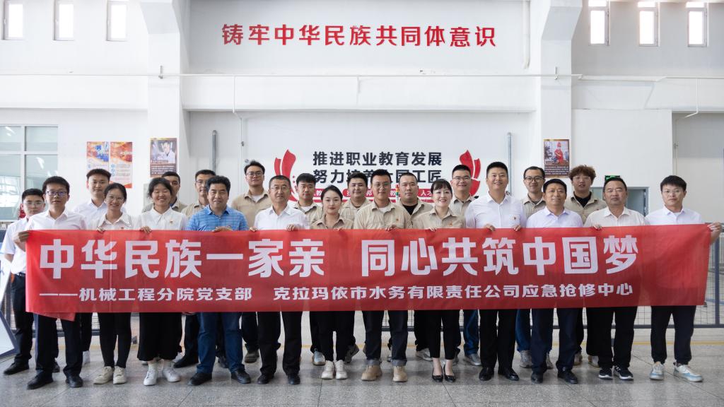 为进一步推动产教融合,加强校企合作,提升青年党员技术技能和创新能力。5月15日,机械工程分院党支部与克拉玛依市水务公司应急抢修中心党支部共同开展“共同团结奋斗、共同繁荣发展”的主题党日活动。水务公司应急抢修中心党支部书记廖叙新主持活动,机械工程分院党支部书记周永新,党支部副书记、院长李继霞出席活动,分院各族师生代表、水务公司应急抢修中心员工共计50余人参加活动。
