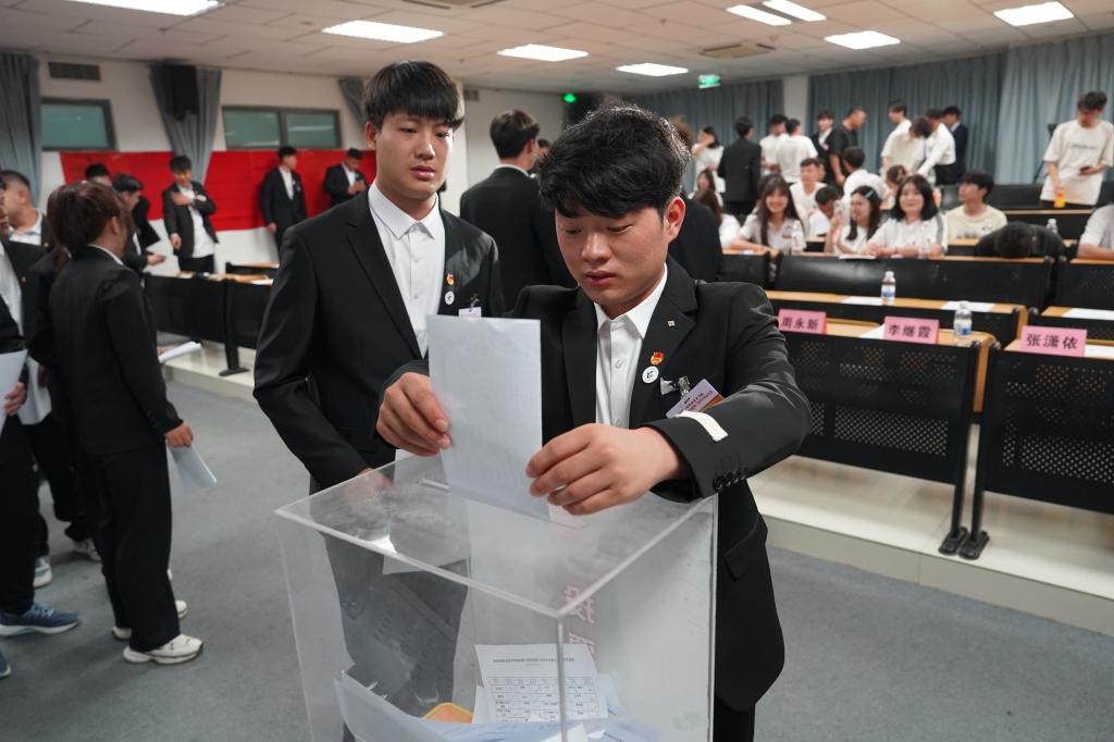 随即,大会进入本届主席团成员选举环节。主持人向各位代表宣读了本次大会代表资格审查报告,选举办法及候选人产生流程,监票、计票、唱票人员名单并一致取得表决通过。学生会主席团候选人王子贤等29名代表依次上台发表竞选演讲,各自阐述了过去一年的工作情况,充分表达了对学生会未来工作的展望,表明了能够胜任工作岗位的自信。