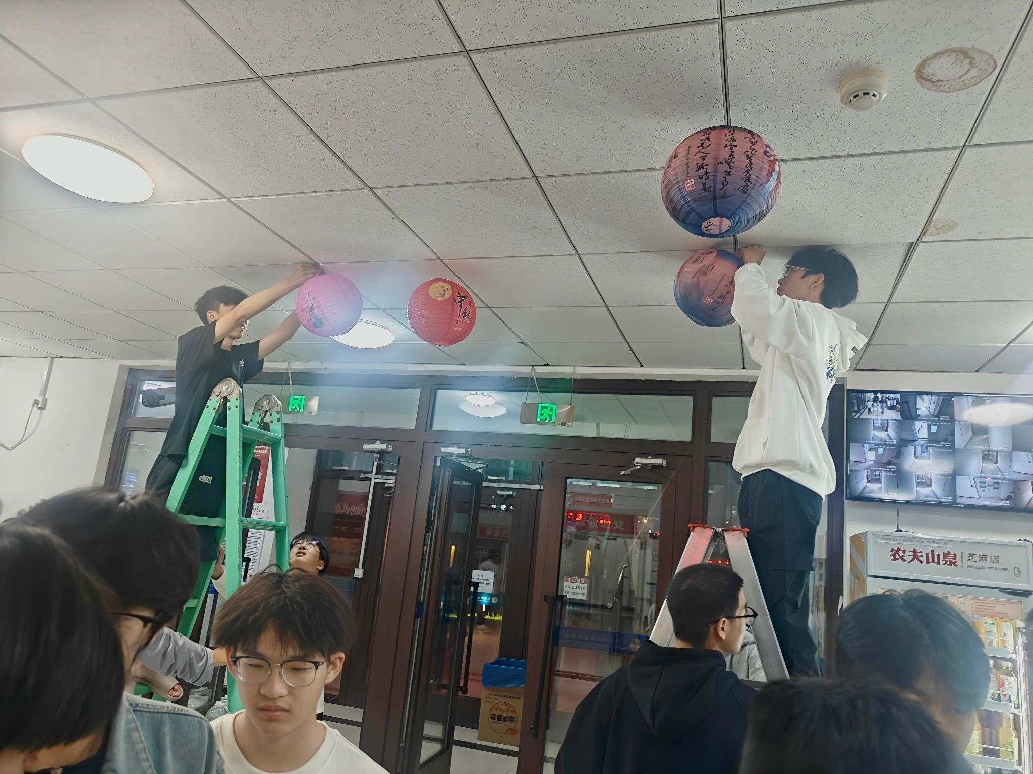 活动前期,同学们积极投入筹备工作,化身“能工巧匠”,利用课余时间亲手搭建场地、制作装饰。一盏盏手工灯笼与精心誊写的灯谜卡片交相辉映,每一处细节都凝聚着同学们的智慧与匠心,也传递出对传统文化的深厚敬意。