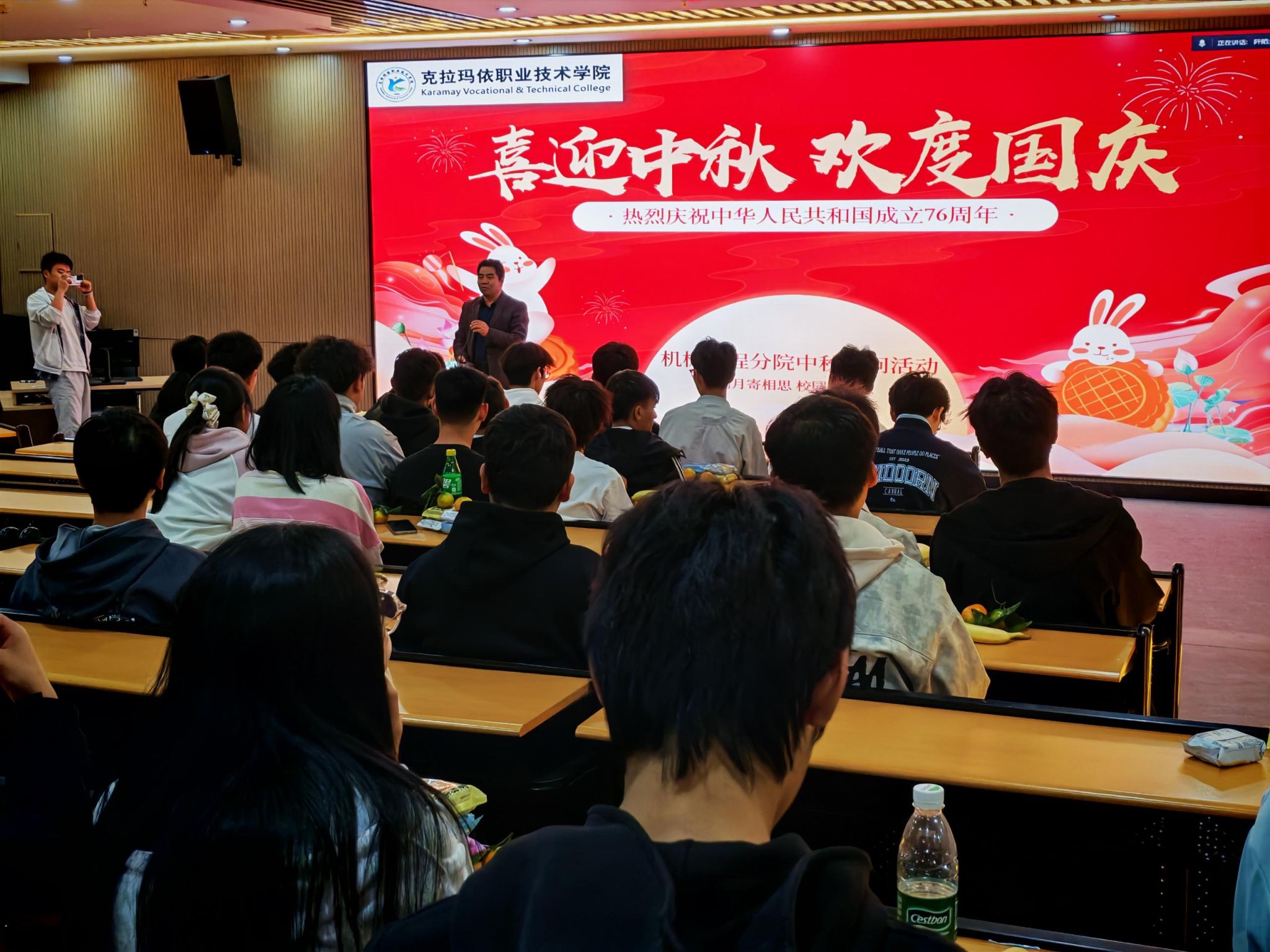 活动中,分院领导与教师为同学们分发了精心准备的中秋慰问品。学生们手捧礼物,笑容洋溢,纷纷表示虽未能回家团聚,却在校园中体会到“家”的温暖。学生吴振亚表示:“这次活动不仅缓解了我们的思乡之情,更增强了大家对学院的归属感。我们将把这份关爱转化为前进的动力,专注学业、提升自我,不辜负老师和学院的期望。”