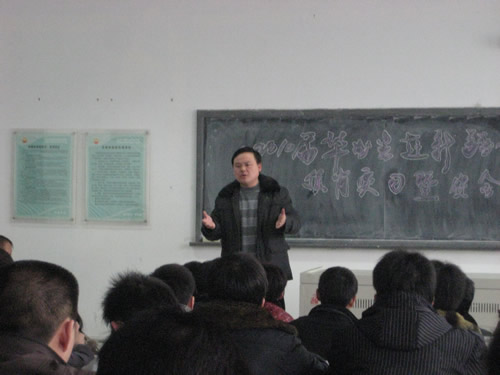 2010年3月17日下午5:30,石油化学工程系、机械工程系、电子电气系对已经与新疆天业集团公司签定就业协议的我院2010届57名毕业生在电教楼110教室进行了顶岗实习动员暨安全教育,参加会议的有石油化学工程系主任李进良、机械工程系副主任周永新、石油化学工程系辅导员党志军、韩娜、机械工程系辅导员赵赞、电子电气系辅导员鲁志刚五位老师,会上李进良主任做了顶岗实习动员和要求,进行了安全教育,周永新副主任做了就业教育,希望同学们珍惜就业机会,按照企业和学院的要求完成本次顶岗实习任务,辅导员鲁志刚、赵赞、党志军、韩娜就本周五离校去企业顶岗实习坐车等事宜做了具体要求。