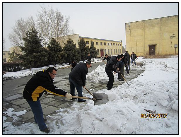 遵照机械党支部公民道德建设月活动计划,同时,为了发挥教师的先锋榜样作用,机械党支部以学雷锋活动日为契机,组织系部在校全体教师,于3月9日开展了一次义务劳动。本次劳动任务是铲除清理校园积雪。