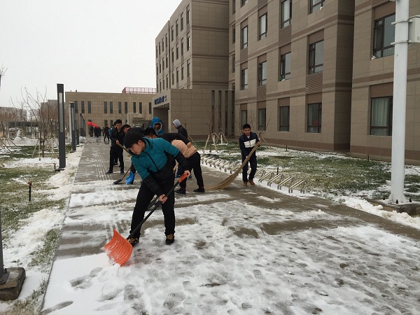在班委的号召下组织了十余名同学,在B1附近进行扫雪,铲除了B1附近人行道上的积雪。与此同时,同学们还提醒路过的同学出行安全,雪天路滑等。化机1432班的同学们积极开展扫雪志愿服务活动,在校园内营造出浓厚的“用我智慧奉献爱”的志愿服务精神。