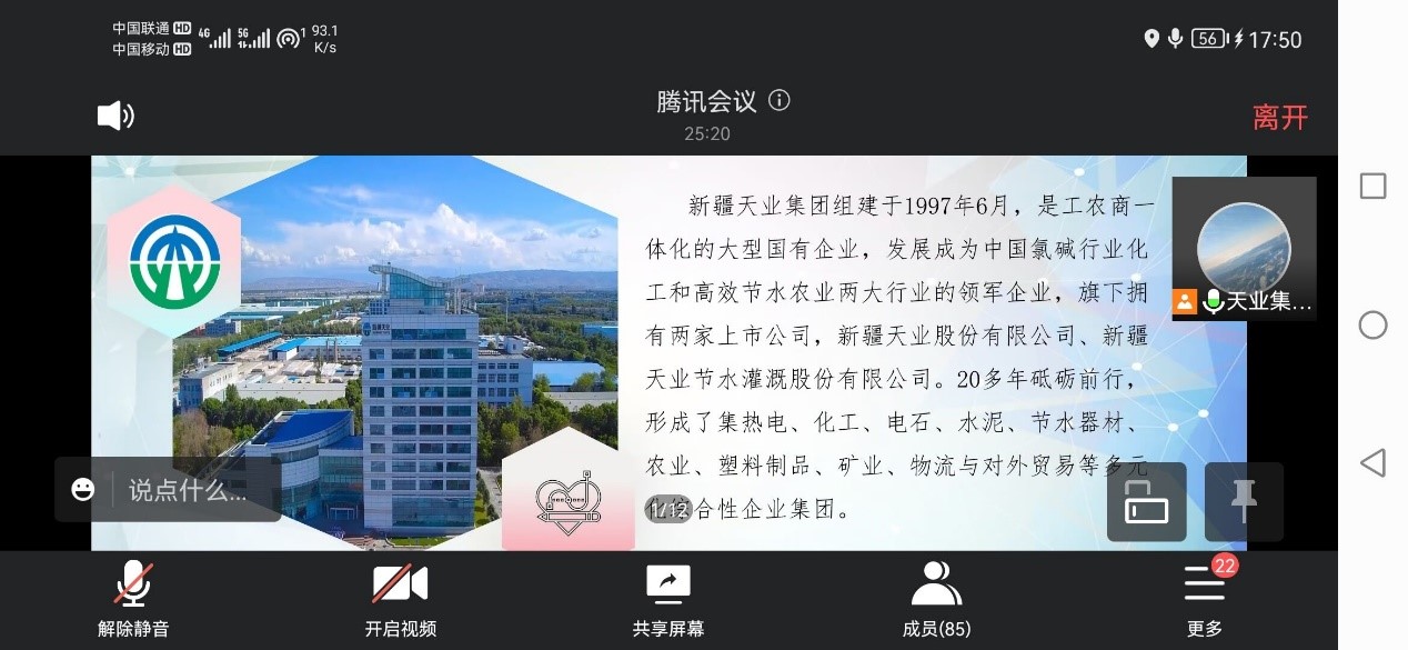 新疆天业集团招聘负责人张经理,通过企业宣传视屏展播,PPT讲解等方式向同学们介绍了企业概况、职业发展方向、人员需求等。作为一家产业涉及热电、电石、化工、水泥、塑料节水、物流商贸、农业农资、矿业产业以及新材料的兵团国企,优厚的薪资待遇吸引着2023届毕业生纷纷加群参与后续线上面试。