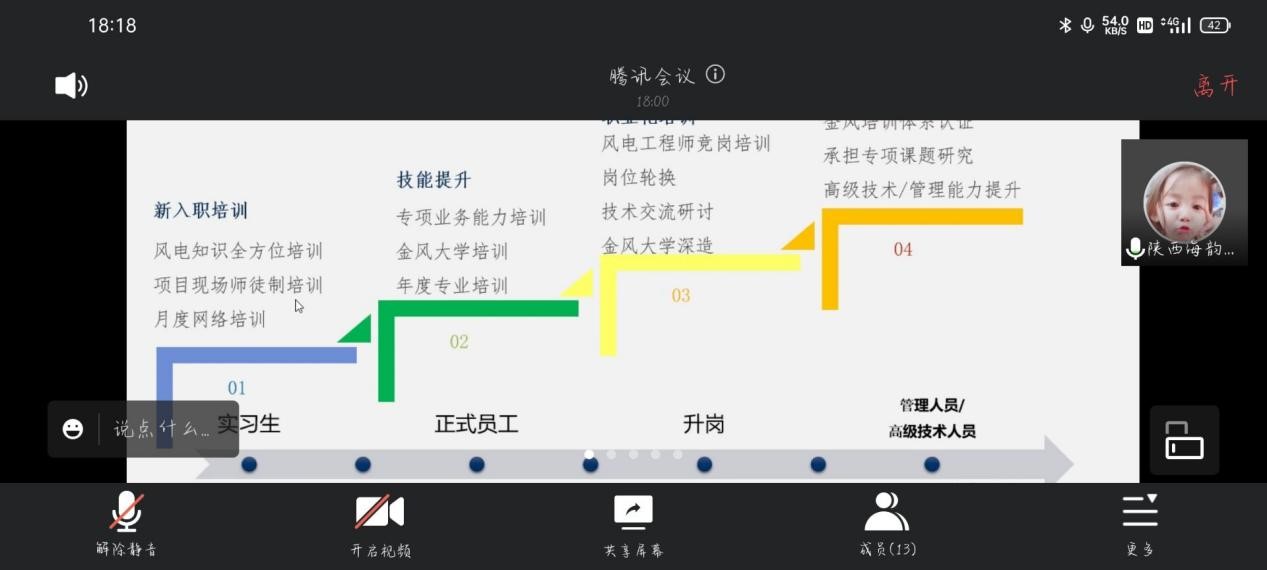 会议上,陕西海韵风能源科技有限公司宣讲人员以幻灯片加讲解的方式向与会学生详细介绍了公司的企业文化、地理位置、规模、主要工作内容,以及公司的招聘计划、工作时间、福利待遇及工作地点等内容,并进行了30分钟的线上答疑。在为学生答疑解惑的同时,对顶岗实习要求进一步进行了明确。