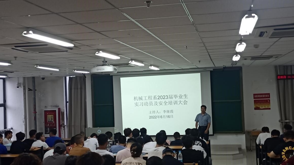 2022年6月16日,机械工程系组织2023届学生在C7-I-101开展了就业实习动员大会。