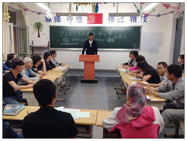班会开始,班主任老师吴晓对5.22暴恐事件向同学们作了介绍并表示:乌鲁木齐暴恐案发生后,国家主席习近平立即做出重要批示,要求迅速侦破案件,从严惩处暴恐分子,及时组织救助受伤群众,安抚受害者家属,全面加强社会面巡控。”随后要求同学们对5.22事件发表自己的看法。班长刘欢同学带头对本次暴恐事件作了表态,他表示:汉族离不开少数民族,少数民族离不开汉族,各少数民族之间相互离不开。我们的祖祖辈辈都和和睦睦地在新疆这片土地上共同生活着,不管是什么民族都是一家人,暴恐分子对我们的家人做出这等丧失人性的行为,难道我们不应该强烈谴责他们吗?随后全班同学都对5.22事件发表了自己的看法。
