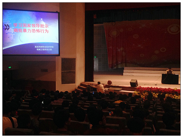 机械工程系开展“学习国家领导批示揭批暴力恐怖行为”主体讲座暨“声讨暴力恐怖分子,争做民族团结先锋”签名仪式