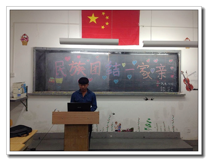 五十六朵鲜花共栽一盆,五十六棵翠竹共连一条根。五十六个民族团结一条心,就能把祖国建设得繁花似锦。作为新一代的大学生青年,我们更要紧紧地抓住多民族共同团结奋斗,共同繁荣这个主题,在日常的校园学习生活中从点点滴滴做起。为了让每个同学都深知民族团结的重要性,汽电1331班在班长王祖彦的带领下,于2014年6月8号在1109教室开展了此次“民族团结一家亲”的主题团课。