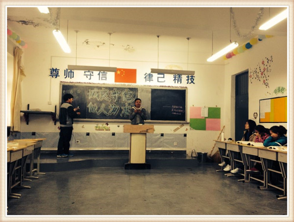 20141112日,我班举行了以诚实守信,做人为本为主的德育课,在同学的配合下圆满的结束!