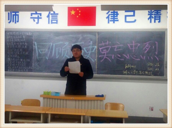 20141130日,机制1431班在2109举行了以“回顾历史,莫忘忠烈为主题的团课活动。
