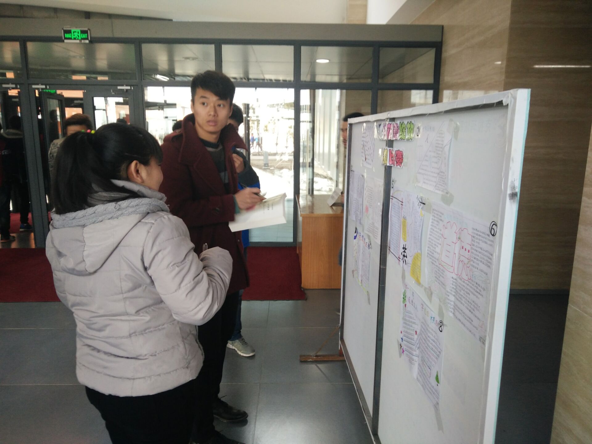 3月18日,机械工程系团总支将一幅幅精美的手抄报通过展板的形式在六号教学楼大厅展出,并采取无记名投票的方式进行评比。期间路过展板的每一位老师、同学都投上了宝贵的一票,教学楼的保安叔叔和保洁阿姨也热情参与其中。经过50票大众评选,机制1531 班杨佰强获得最佳创意奖,化机1531李彩弟获得最佳版式奖,机修1531 田建新最佳书写奖。
