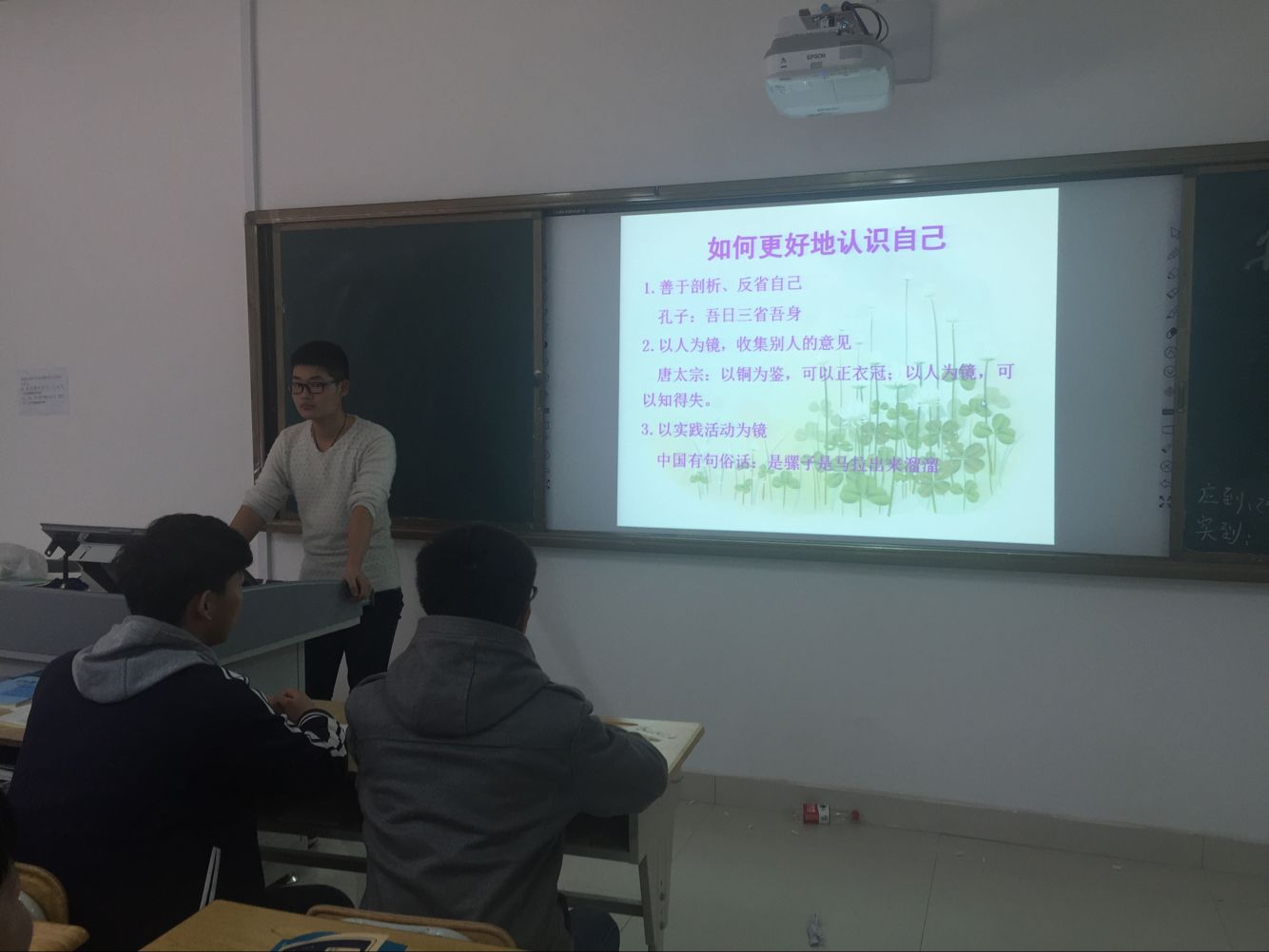 首先,主持人李波给同学们介绍了这次德育活动课的核心,是要让同学们知道别人对自己的看法和对自己的评价。随后主持人给同学们发纸,让同学将自己的性格写在白纸上但不写名字,并让所有同学一起猜纸上写的特征是班里的那位同学,最后,主支持人又发了纸,让同学们写周围的同学的性格特征,让大家猜写的是谁同学们很认真的写下了对别人的看法和认识。