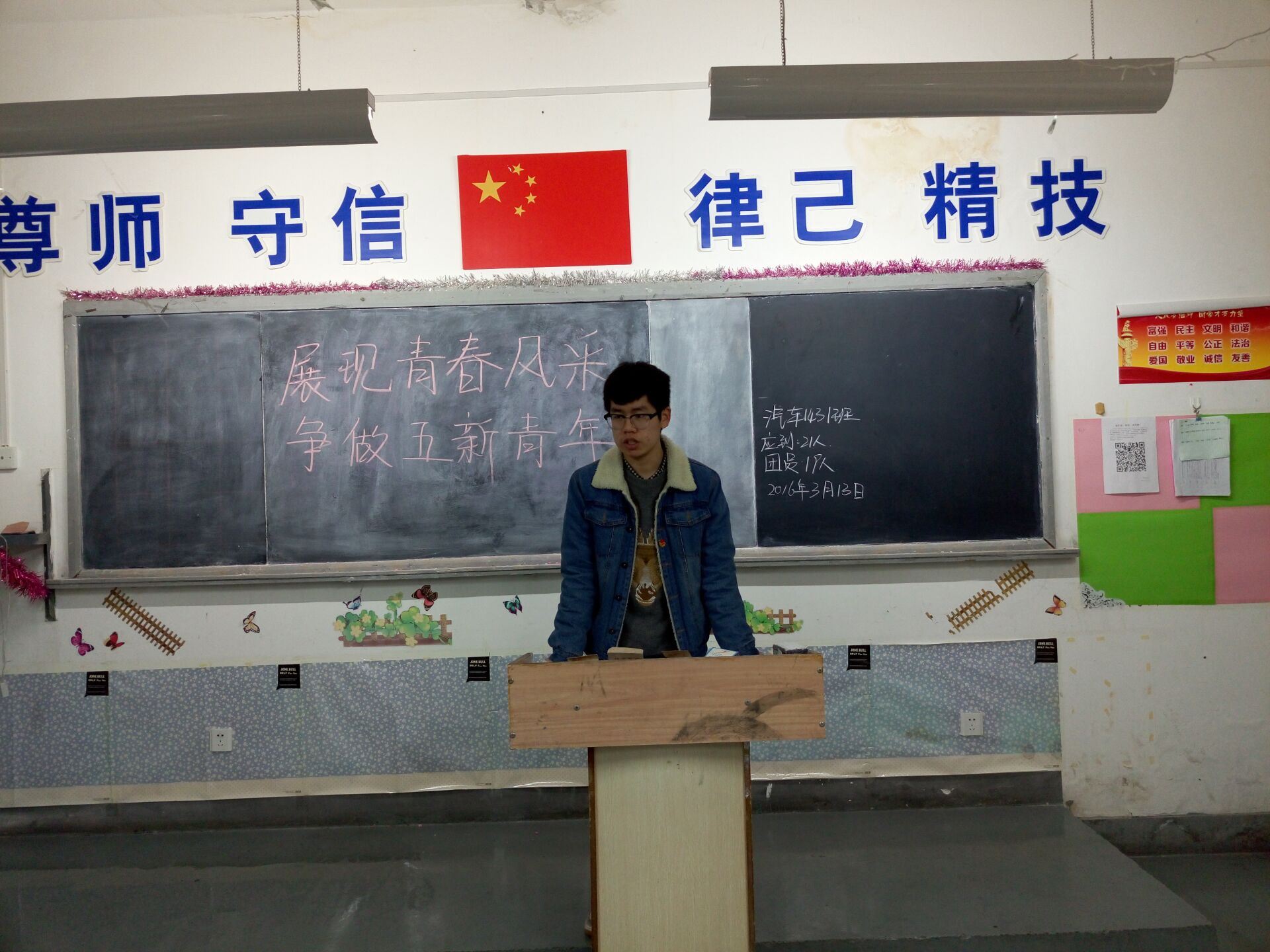 2016年3月13日,机械工程系汽车1431班全体同学在2211教室开展了“展现青春风采,争做五新青年”为主题的团课活动。