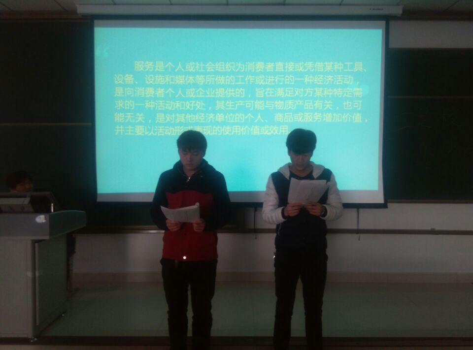 活动开始两位主持人就关于同学们自身服务意识薄弱等问题开始了谈论。王周伟同学说到:“作为当代大学生我们不但要刻苦学习,更要树立正确的价值观,增强服务意识,只有这样我们才能更好的立足于校园,毕业后才能更好的立足于社会。”听了王周伟同学的一番讲解同学们感悟颇深,纷纷举手发言。接着李伟同学还为大家讲述了一个关于大学生毕业提高至自身服务意识的事例,让同学们更加真切的认识到自身服务意识对个人职业发展的重要性。最后两位主持人为同学们 播放了“感动中国十大人物”视频片段,让同学们看到更多的大爱,升华个人品质,增强立足校园服务意识。
