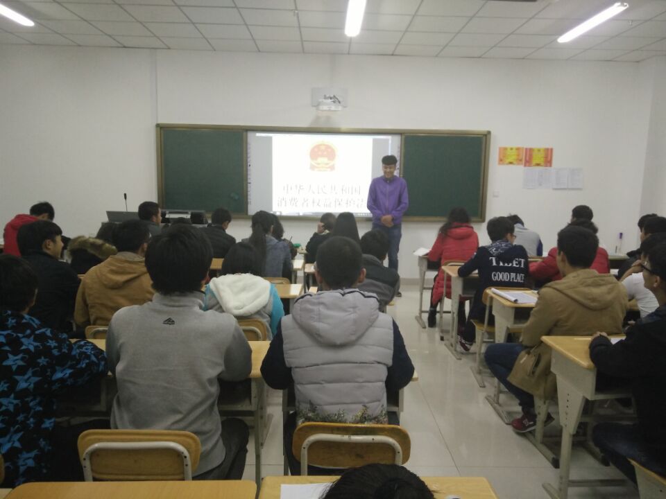 在一阵掌声中,本次活动课拉开帷幕,首先班长陈蛟龙对消费者权益法的标志做了详细解释,让同学们了解了标志其中的内涵。为了让同学们深刻的认识到消费者权益的重要性,主持人还列举出了一些案例,让大家懂得法律无处不在,调动了同学们对了解自身权益的积极性。接下来又为同学们播放了一段视频让同学们更加形象生动的了解《中华人民共和国消费者权益法》,又通过一些小游戏与同学们互动,同学们积极参与,纷纷表示这次《中华人民共和国消费者权益法》学习活动课受益匪浅最后由董苗为本次活动课做总结。