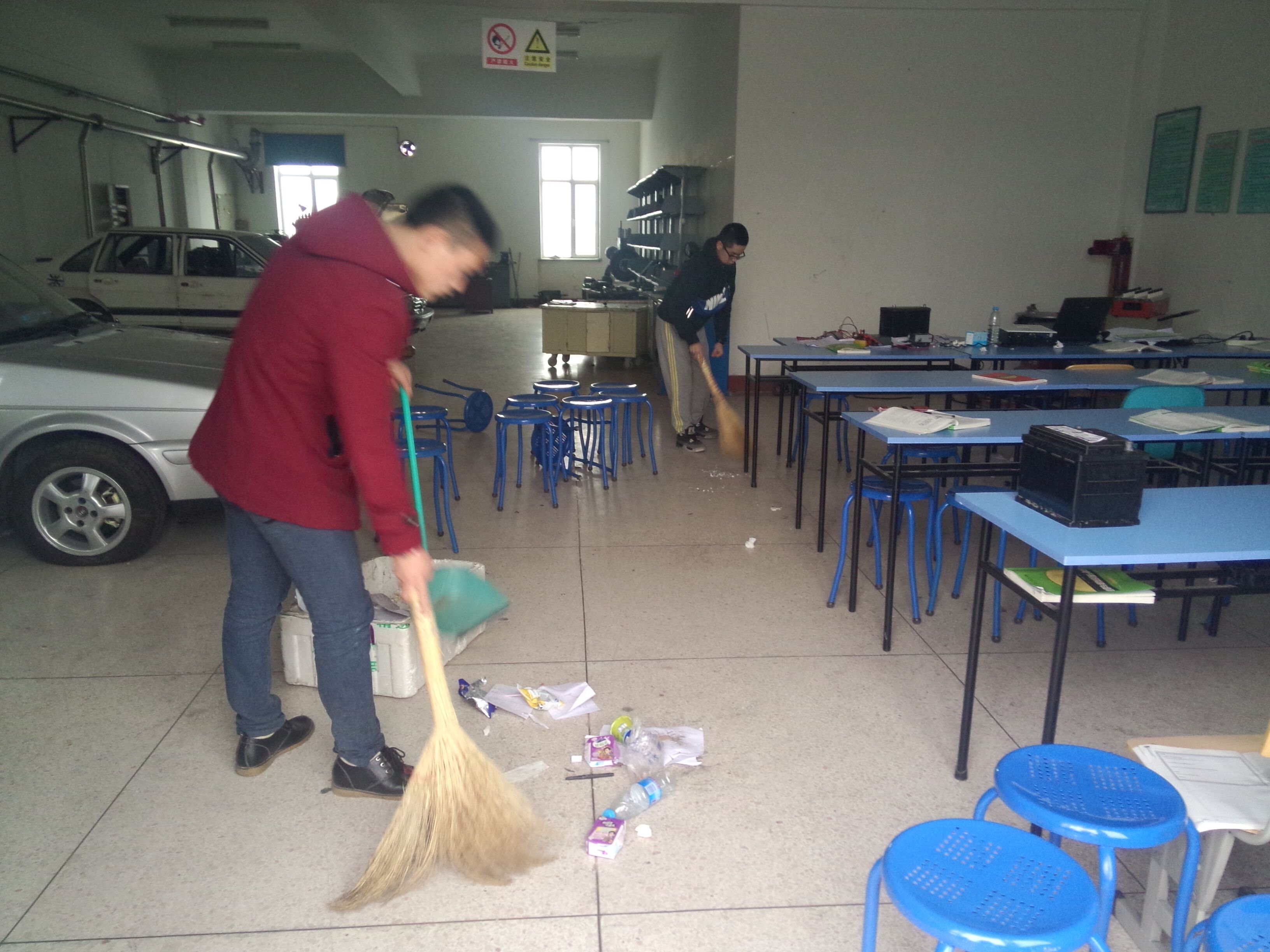2015122下午,汽车1431班学生利用德育课时间对致远楼进行了清扫。活动效果良好,使教学楼及公共区域焕然一新,并顺利完成了本班十二月的志愿者活动。