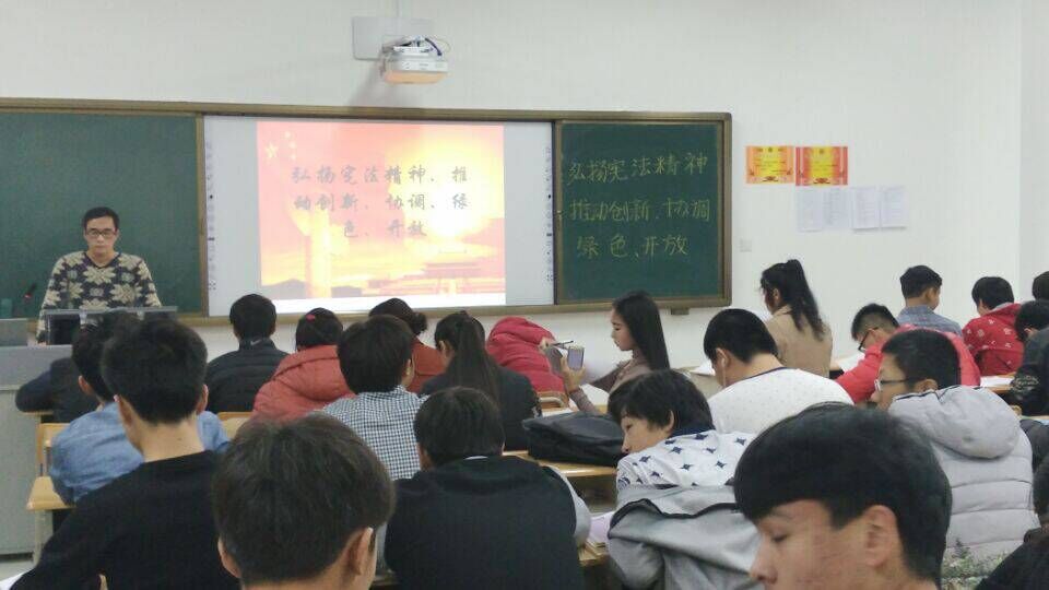 为了纪念宪法宣传日以及让同学们深入学习宪法的基本原则和基本知识,126晚,化机1531班全体同学于C6-I-308教室开展了以弘扬宪法精神,推动创新、协调、绿色、开放为主题的班会。本次班会由宋小成同学主持。