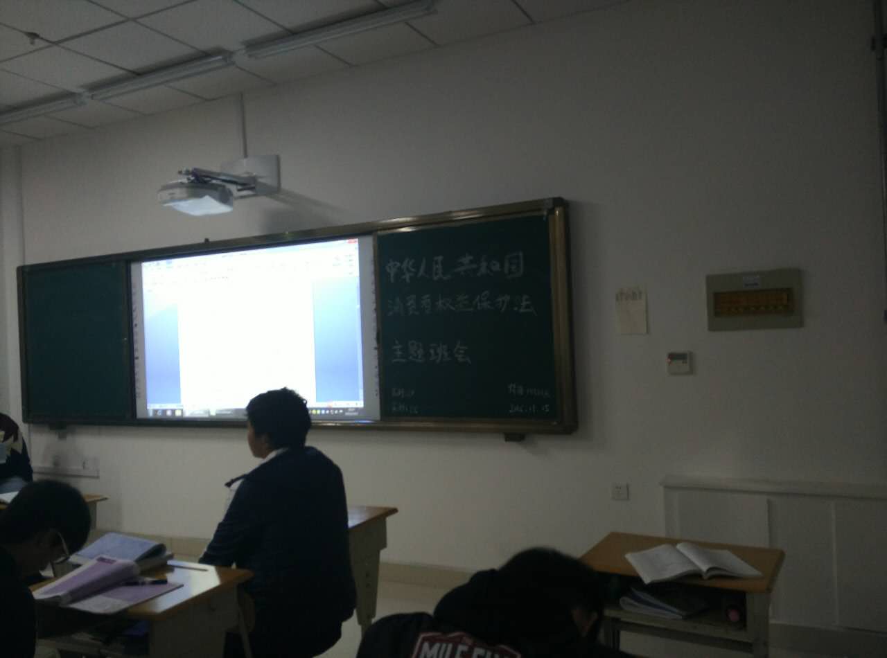 首先主持人为大家介绍了《中华人民共和国消费者权益保护法》的意义。并且举实例让同学们认识到作为消费者我们享有很多权利。接着又为同学们播放了一段视频,同学们观看视频后有了深刻的体会,相互讨论、纷纷举手发表个人观点。为了活跃课堂气氛加深同学们的理解主持人又以抢答问题的形式让同学们参与其中。