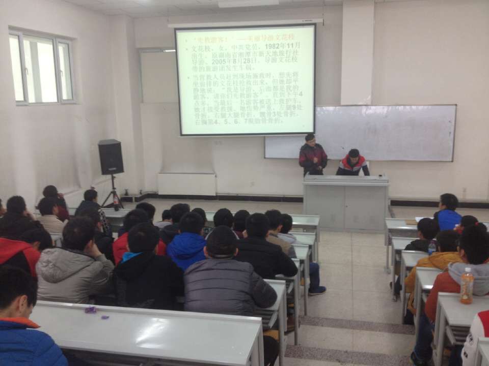 2015年11月25日,学院独山子校区机械工程系汽车1531班同学开展了一次热闹非凡的德育课。以“尽忠职守,爱岗奉献”为主题,主持人有薛俊龙,宋冰。活动地点于4号楼427教室,课堂秩序良好氛围浓厚。