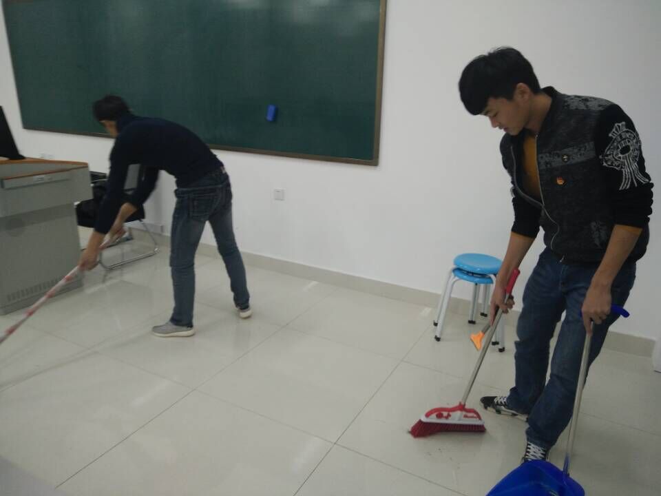 下午八点,化机1531班在C5楼集合完毕,此次劳动由劳动委员贾琛诺宣读工作安排,并讲解在机房打扫卫生活动的一些注意事项。随后由各班委带领到分配好的机房进行打扫。在机房里,由班委组织、分配、安排打扫,同学们干的热火朝天,最后脏乱的机房教室被打扫的干净、彻底。同学们都不怕脏、不怕累,还互相帮助,这真正体现了化机1531班的互助与团结。
