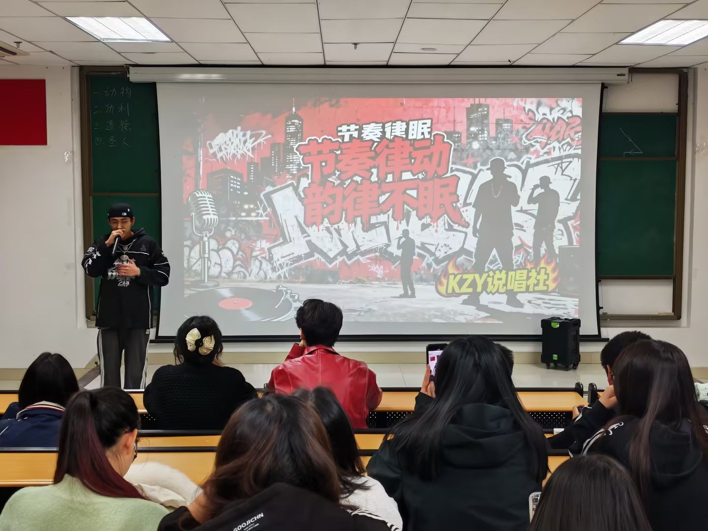 比赛以“青春表达、节奏共鸣”为主题,旨在为热爱说唱艺术的学生搭建展示才华、交流创意的平台。现场气氛热烈,座无虚席,展现了学生社区文化活动的蓬勃生机。