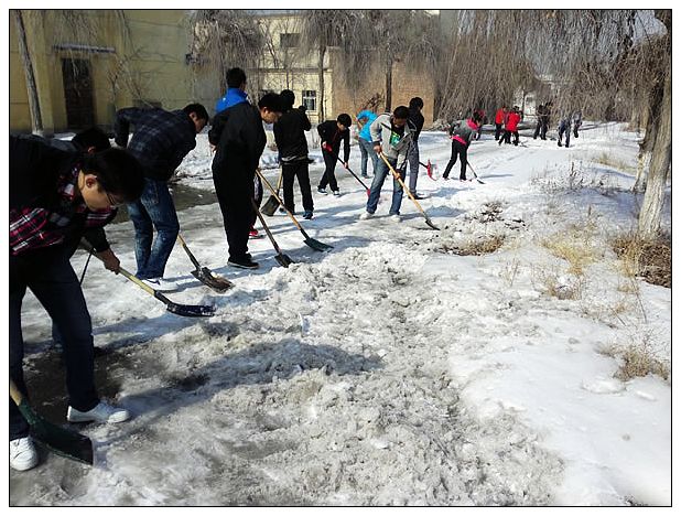 在系党支部、系团总支带领下,每位积极分子都明确了自己的劳动任务,发扬了雷锋同志无私奉献的精神,清扫了院内主要道路的积雪,为实习老师、学生通行创造了方便。