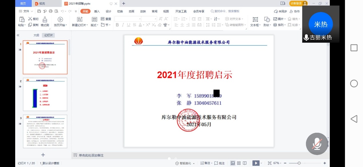 为了增加机械工程系2022届毕业生的就业机会,拓宽就业渠道,2021年5月27日,机械工程系对接库尔勒中油能源技术服务有限公司在腾讯会议上开展了线上专场宣讲招聘会。