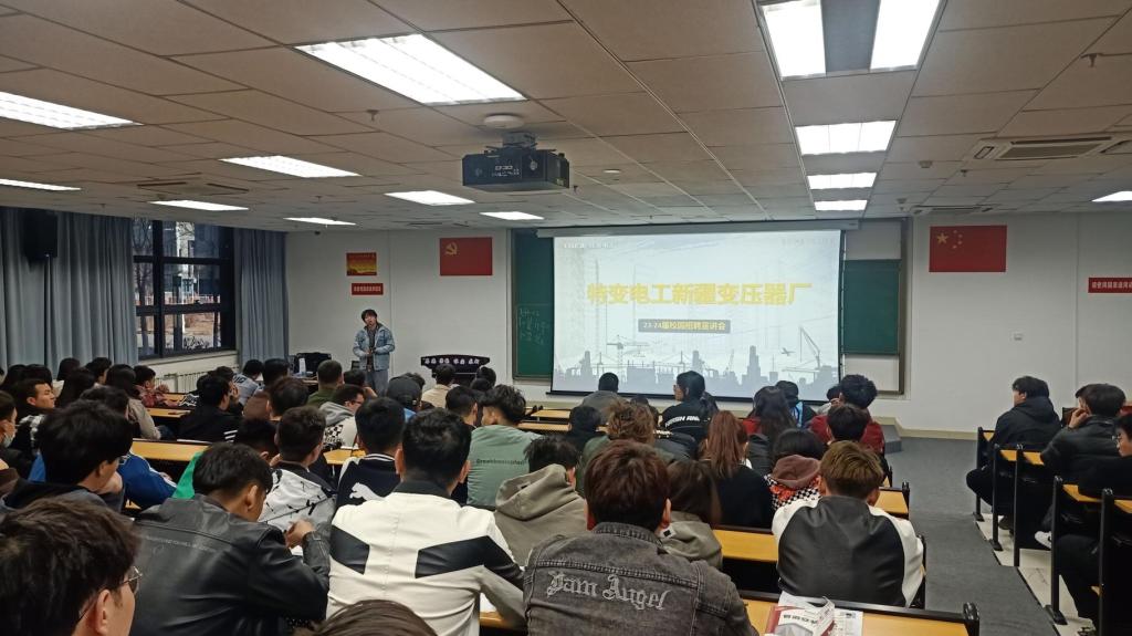 202343日下午,特变电工股份有限公司新疆变压器厂在C2-II-102开展了2024届毕业生专场宣讲招聘会,130人到场参会。会议上,公司人事专员以幻灯片加讲解的方式向与会学生详细介绍了公司的文化、地理位置、规模、工作时间、福利待遇及工作地点等内容。