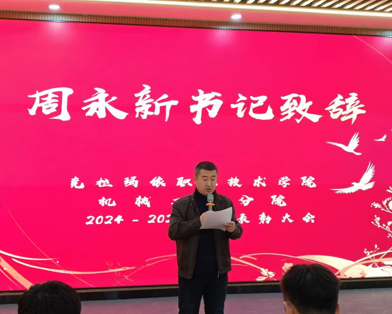 为了全面贯彻党的教育方针,致力于提高学生综合素质,推动学生德智体美劳全面发展。12月24日,克拉玛依职业技术学院机械工程分院2024-2025学年第一学期表彰大会在C2-2-103教室隆重举行。机械工程分院党支部书记周永新老师,辅导员张潇依老师,阿丽米热·乌斯满老师,刘永韬老师,李聪老师以及各班学生代表参加本次大会。