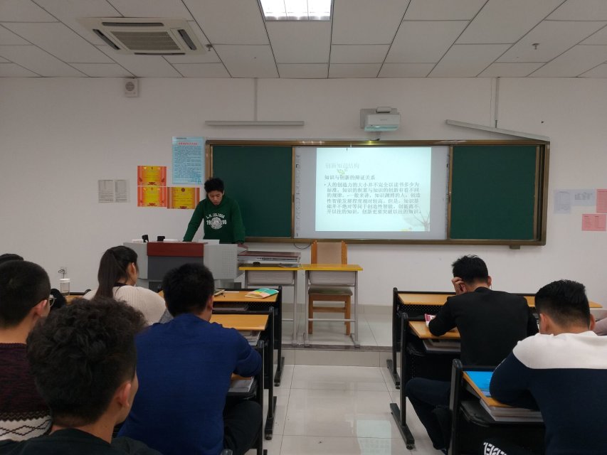 班人员到场,张宁宁发生亮剑。随后由达尼亚尔为大家介绍了创新创业的的必要性和应具备的素养,随后又用几件典型案例为大家说明创业的对社会的影响。最后班主任做了简短的总结,在激烈的商战中,只要勤于思考,出奇制胜,往往能找到开辟市场的突破口。世界上创业的途径很多,有热门,也有冷门,只要善于去发掘、开发,  就会有所作为,有所收获。
