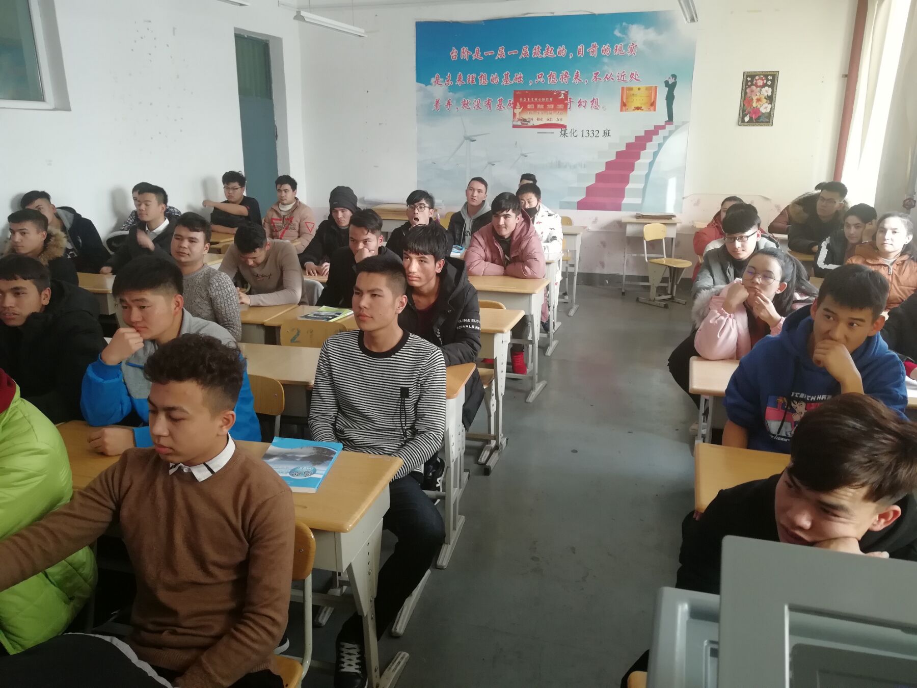 2018125日下午540分机械工程系汽修1833班在2号楼2208教室开展了关于"祖国我们成长的摇篮"的德育课,班主任买尔达老师和汽修1833全体 同学参与。