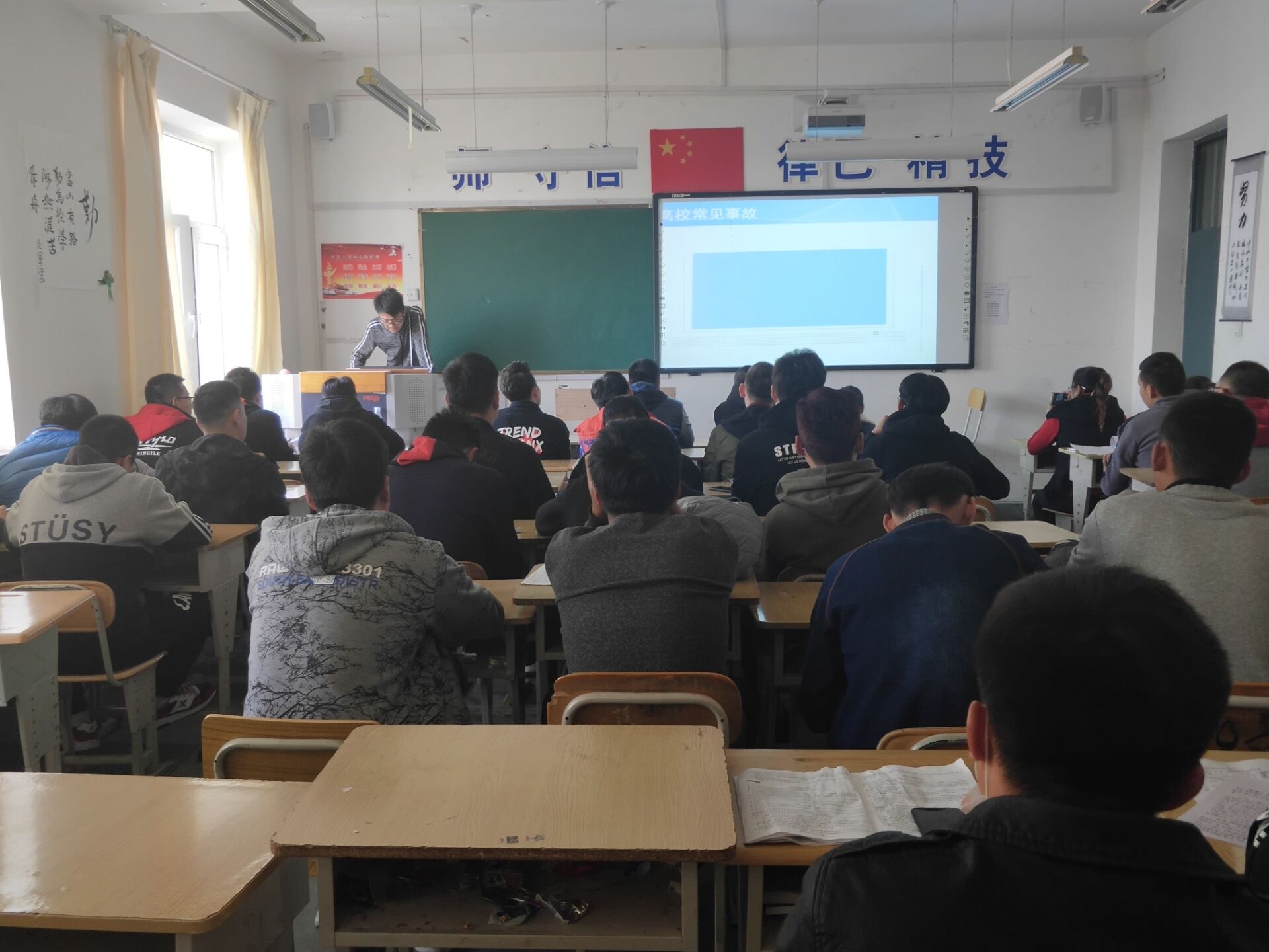 2018年10月24日,独山子区机械工程系汽电1831班在2103教室组织上了德育课,参加此次德育课的是于秀祥老师和汽电1831全体学生。