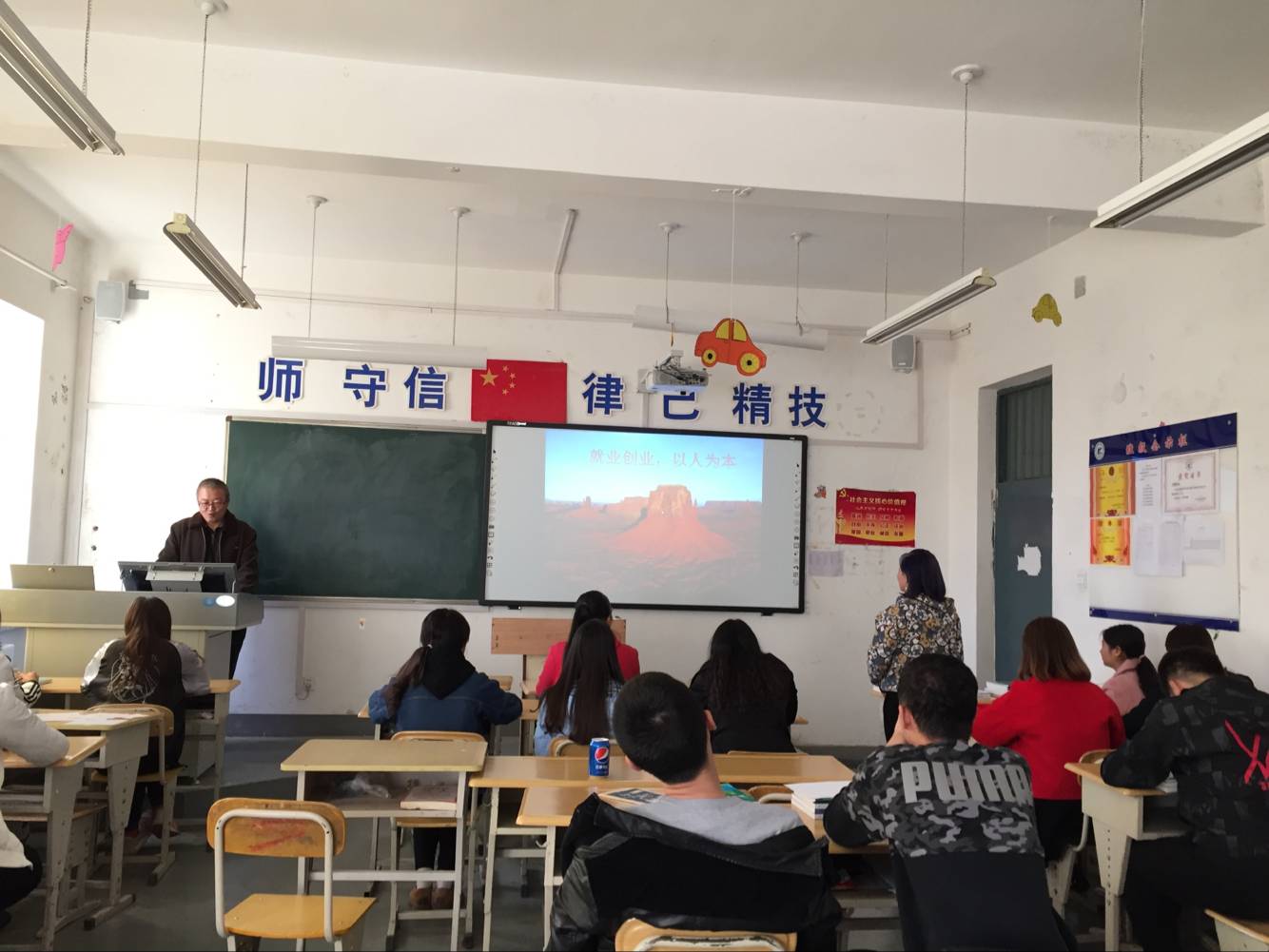 在当前金融海啸的影响下,我国中小企业备受冲击,失业人数急剧上升,企业的招聘越来越挑剔,直接影响到毕业大学生的就业形势。2018年10月24日机械工程汽销1631班在教室2206开展了就业创业 以人为本”主题德育课,本次德育课由全信慧马晓莲主持汽销1631全体同学参与。