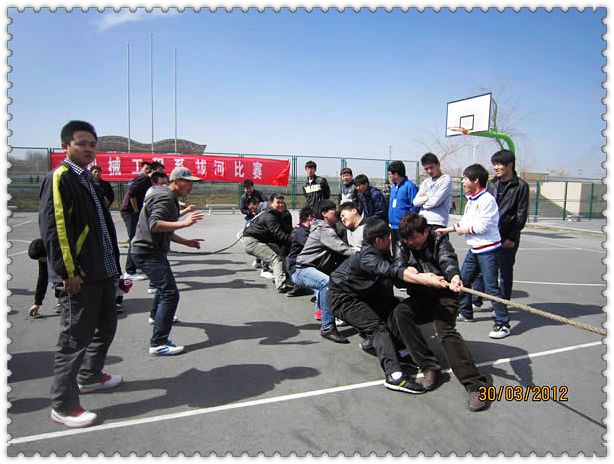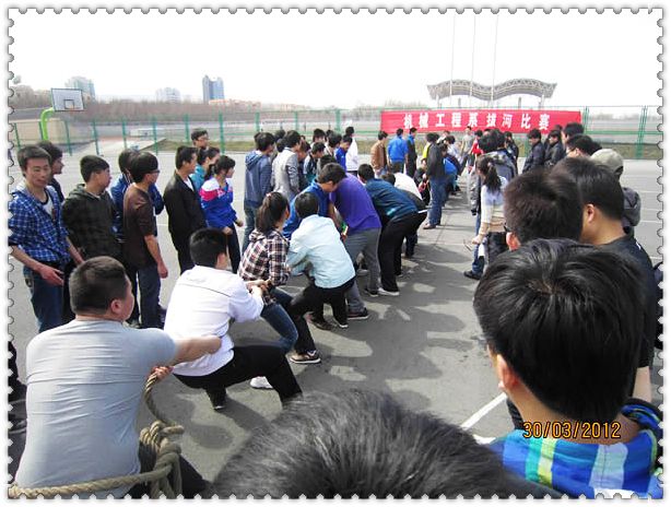 2012年3月30日中午13:40分,机械系拔河比赛决赛在篮球场上火热上演。赛场秩序由系辅导员张潇依老师负责,比赛的裁判是来自机械工程系化机1131班的班主任方屹老师。