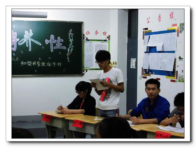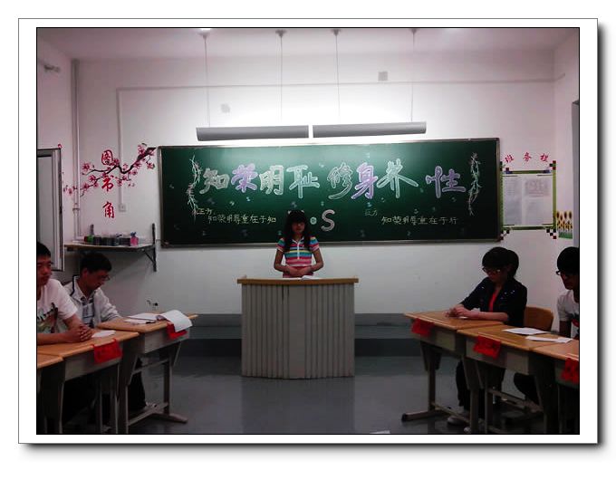 2012年5月6日周日晚21:30,焊接1131班在1204教室开展了以“知荣明耻,修身养性”为题的主题班会,此次主题班会以辩论赛的形式开展。