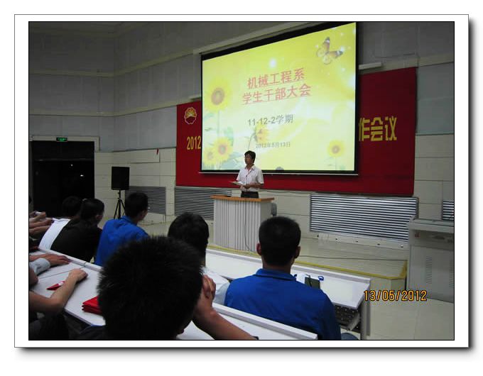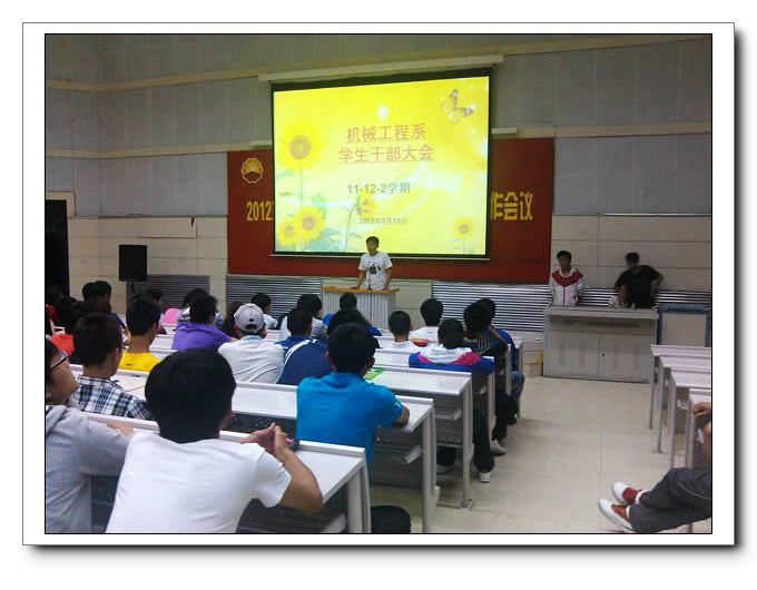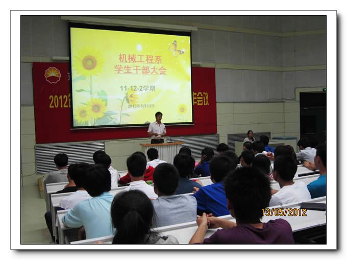 5月13日晚,机械工程系学生干部大会在学院大报告厅召开,大会由系团总支书记刘少华老师主持,全体学生干部与会。