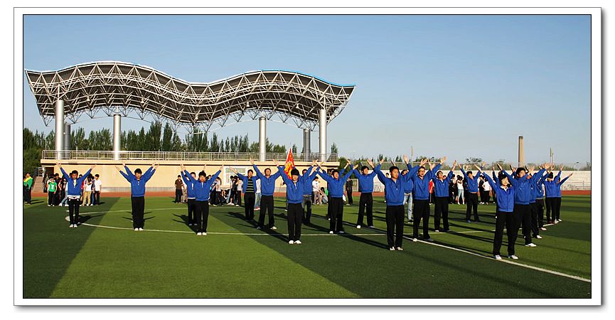 机械工程系为推广与普及第九套广播体操,更加科学有效的体育健身方法,从4月初开始,机械工程系认真组织我系全体学生,学习第九套广播体操。2012年5月23日下午8:30,机械工程系组织全系学生在学院运动场举办第九套广播操比赛。各班级班主任担任了此次评委。