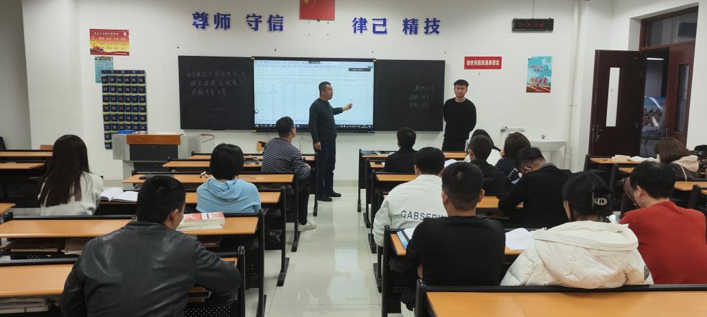 随后刘永韬讲解了学管教育报《中华民族传统礼仪——尊师重道》的相关内容,通报了本周分院学生数据。李艺老师讲了班务栏的正确使用方法。