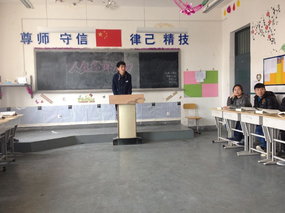主持人杨帆南极提出一个问题你认为怎样的人生才算的上是成功的,全班的的同学都一一的说出了自己的看法。每个同学的看法都各不相同,这就说明人生成功的路有很多。主持人随后读了几个有关人生成功案例,让全班同学讨论一下成功需要具备那些因素。同学们激烈的讨论,最后由牛雄雄同学为我们总结了人生成功的法则。