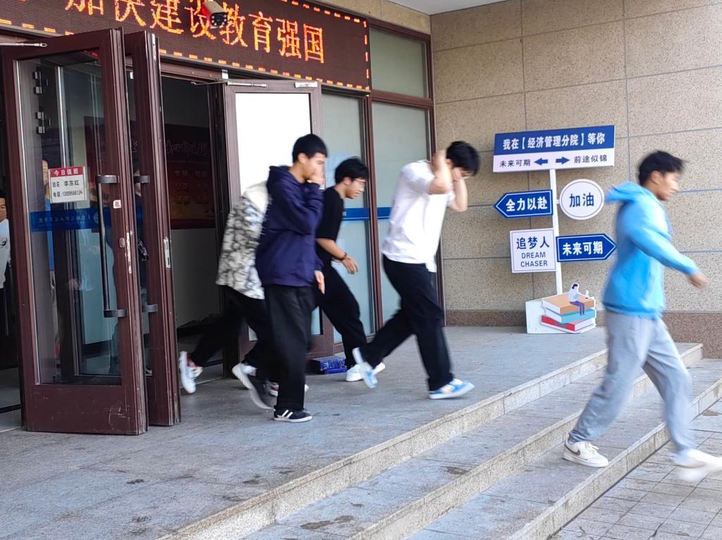 下午14:35随着楼道内警报声响起消防演练活动正式拉开了序幕,机械工程分院团总支学生会迅速到达指定位置,第一时间组织学生进行疏散。引导学生用湿毛巾捂住口鼻,弯腰低姿沿着预定的疏散路线有序撤离教学楼。整个疏散过程紧张而有序,全体学生安全疏散到了学院指定位置。