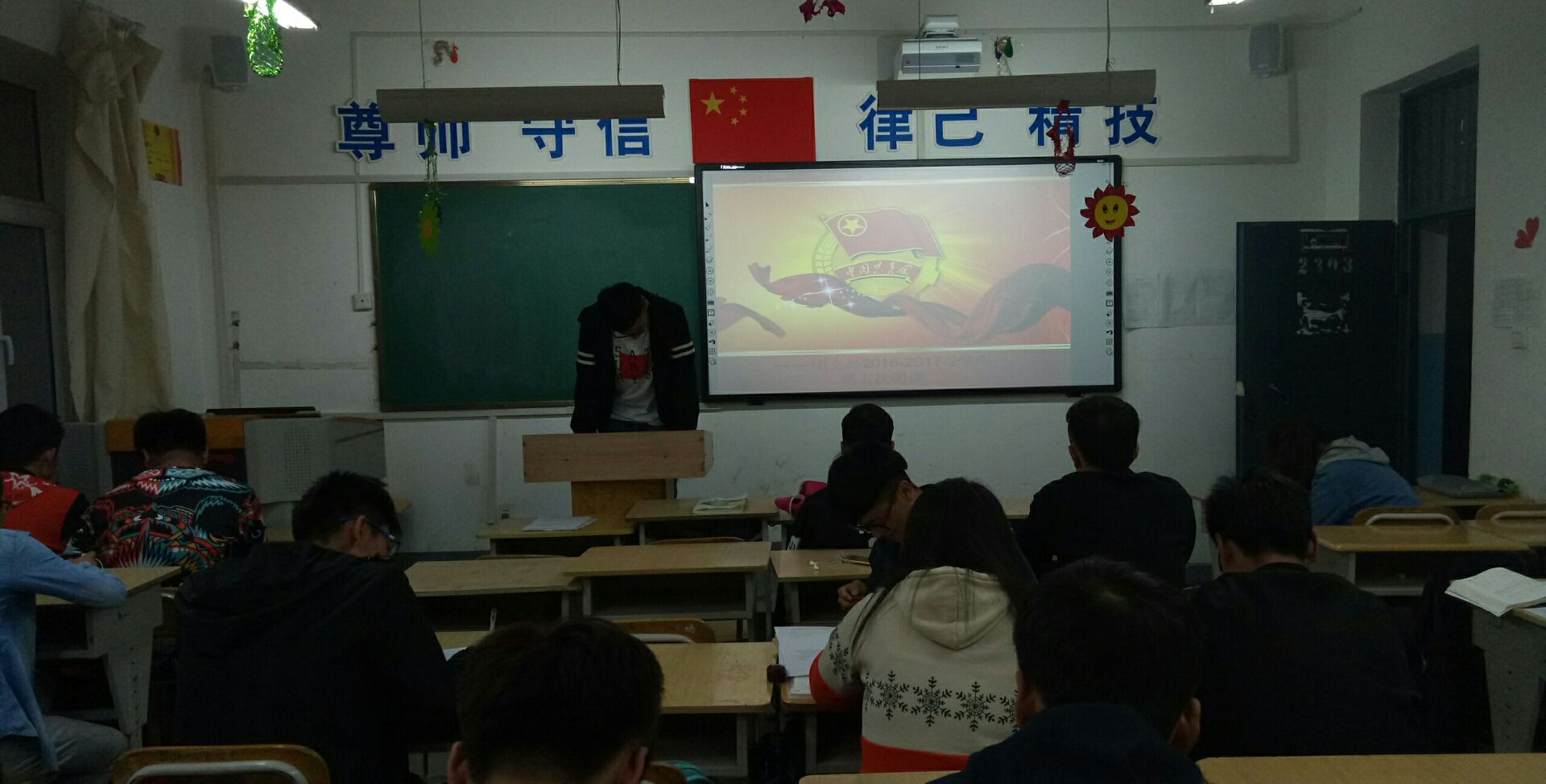 2017611日晚2130时,机械工程系汽车1631班在2303教室,参加团课的是汽车1631班全体同学。