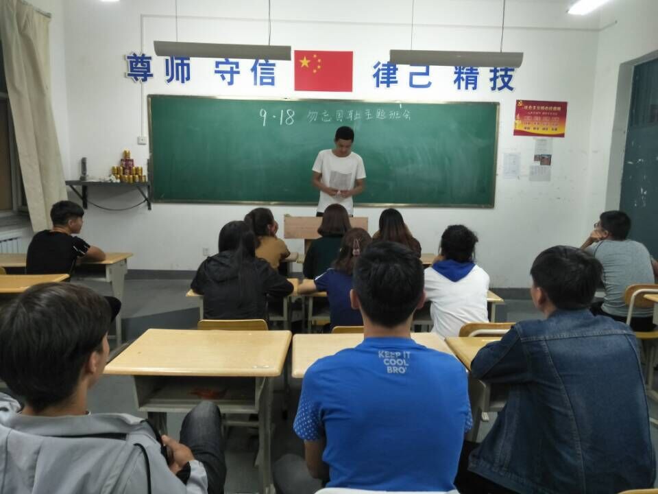 2017年9月18自习期间,机械工程系汽销16312306教室开展了“九一八勿忘国耻主题班会”。本次班会由班主任买尔达老师组织学习,班长童年同学主持开展,汽销1631班全体同学参与。