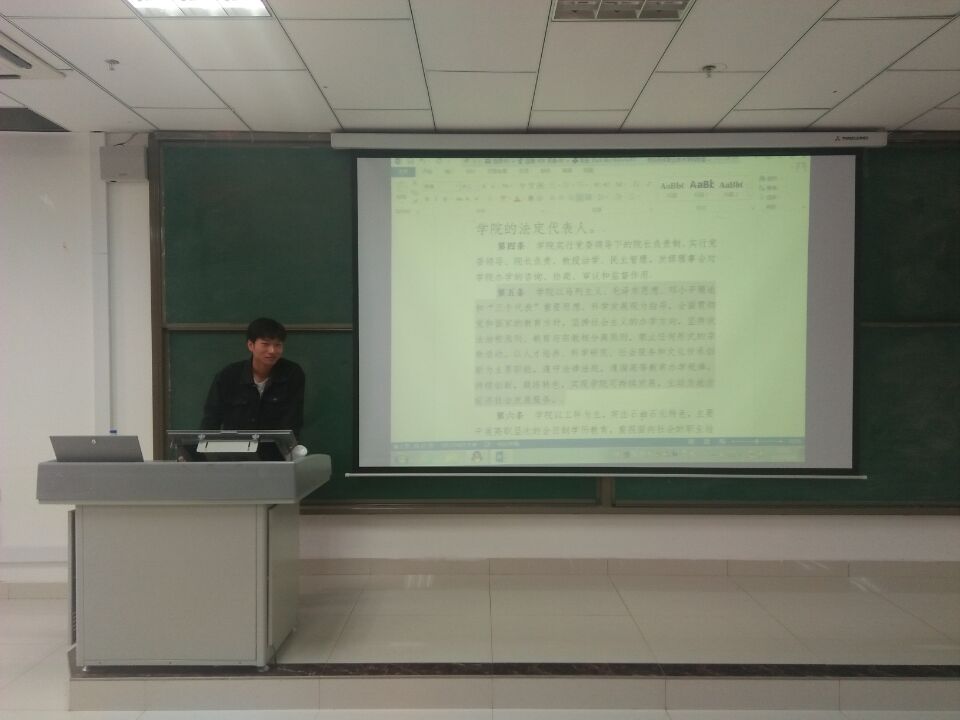 首先,主持人向大家介绍了克拉玛依职业技术学院的发展史,讲述克拉玛依职业技术学院从一个小小的石油学校发展成为一所以工科为主,以石油石化为特色、文理兼备的综合性高等职业院校。接着,主持人请每位同学起来宣读了“克拉玛依职业技术学院章程”,并告诫同学们,一定要遵守学校的每项规定。最后,钟梦娇老师做了总结讲话,身为一名大学生一定要时刻牢记自己的身份,做一个遵纪守法合格的大学生。