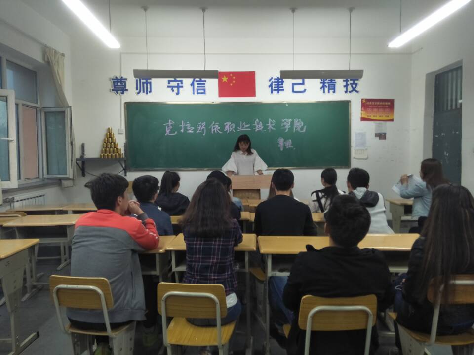 4月26日,机械工程系汽销1631在2306教室开展《克拉玛依职业技术学院章程》主题德育课。此次德育课由候红娇主持,汽销1631班全体同学参与。