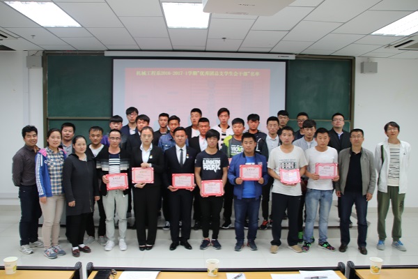 大会开始,由机械工程系团总支学生会主席茹敖年针对本学期学生会工作了汇报总结。随后,机械工程系副书记李继霞老师宣读对优秀个人及集体的表彰决定后,主持人公布了机械工程系2016-2017-1学期荣获奖学金学生名单、优秀学生会干部名单、双文明班级名单等,获奖学生代表也发表了获奖感言,各位老师为他们颁发了荣誉证书,同时也为能有这些优秀的学生及团体感到欣慰。最后,机械工程系主任周永新老师、党支部书记王林槐老师、副主任李继霞老师做了总结讲话、其中党支部书记周永新老师讲到:同学们要培养正确的人生观、价值观和世界观,提高自己的思想政治觉悟,虚心向别人学习,以全心全意为同学服务为自己的宗旨,乐观向上的工作态度认真做好每一件工作。