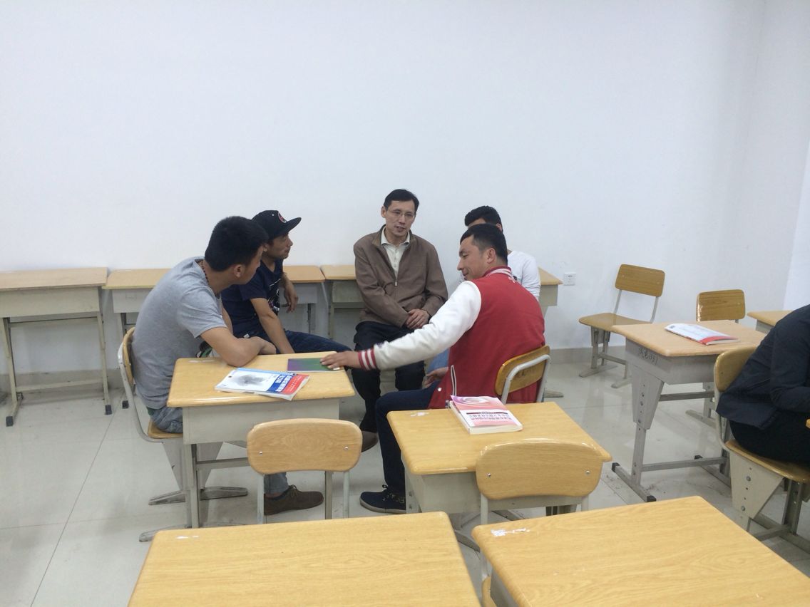 学习开始,全班齐唱了国歌。接着,播放学习了《新疆新闻联播》关于4.12日新疆各民族团结进步座谈会内容。后又由班长宣读了五问维吾尔同学和汉族同学”等文章。同学们认真学习听讲,并踊跃发言申明自己的观点。课程最后,全班起立,集体宣誓。