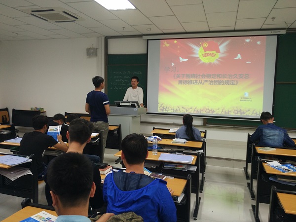 2017年416日,机械工程系机修1631班全体同学,学习了《关于围绕社会稳定和长治久安总目标推进从严治团的规定》的文件,“三会两制一课”,讨论如何加强基层团组织建设的三个方面进行了学习。