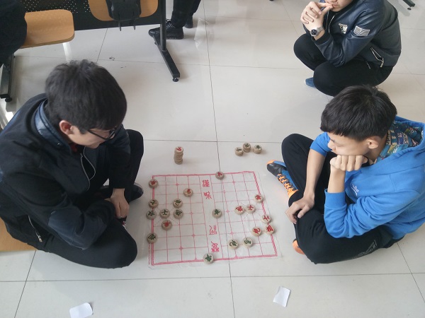 首先,纪检部部长井鹏飞宣布完会场纪律,以及比赛时应注意的相关事宜后。会场工作人员开始忙碌起来了,同学们看起来都非常活跃,参赛人员脸上都充满了期待,谁将会是自己的对手呢。随后,会场工作人员进行抽签,抽签结束后,三种棋将同时进行,精彩的比赛将一触即发。每一位参赛人员的表情各不相同,有看起来紧张的,也有很放松的,还有东张西望的。随着时间的推移,气氛也越来越紧张,最受欢迎的莫过于象棋了,其他两种棋艺选手们都结束了,唯独象棋比赛还在继续,同学们都铭记着“观棋不语真君子”的道理,静静的观看着比赛,你进我退,你攻我挡,观棋人员也跟着紧张起来,战斗持续了整整四十分钟后,才分出胜负,最终机制1631班的朱永杰同学和其它几位同学进入了明天的决赛。